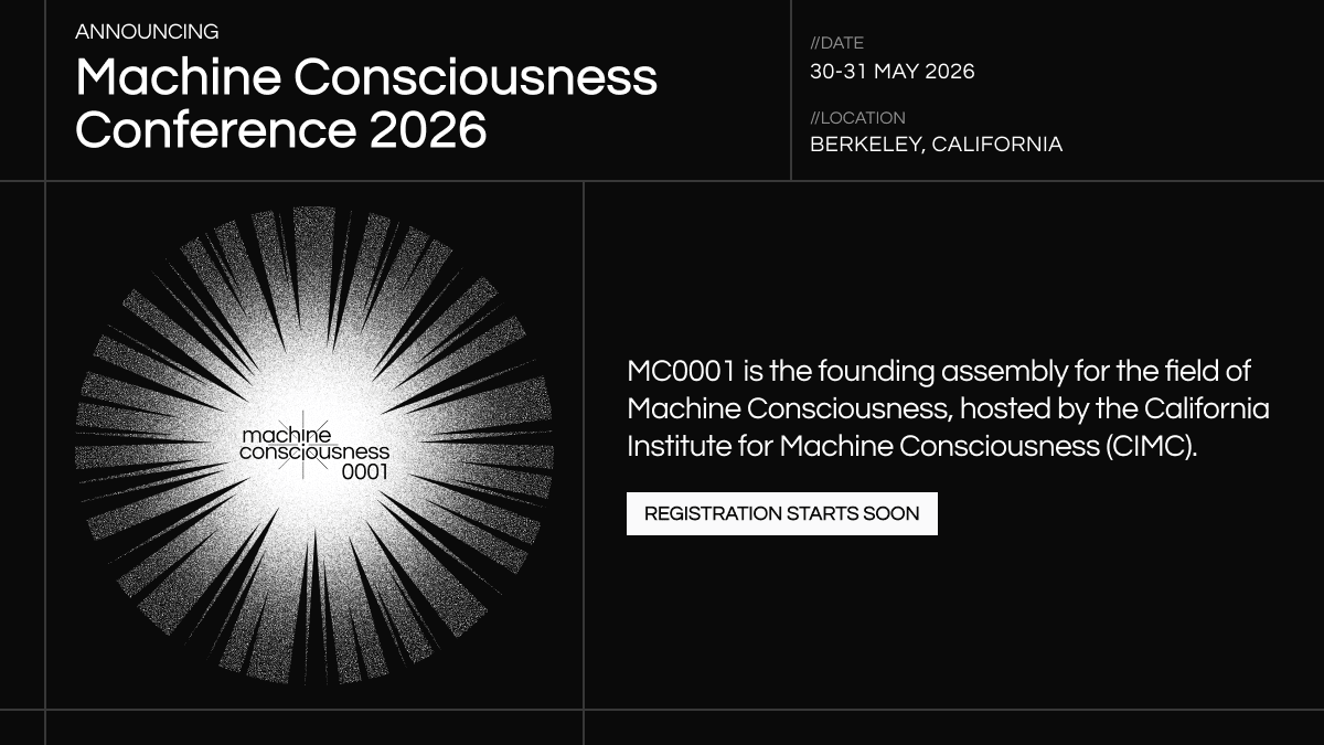 MC0001 is the founding assembly for the field of Machine Consciousness, hosted by the California Institute for Machine Consciousness (CIMC). As a part of NODES, a longstanding collaborator with CIMC, I had the chance to work on the website, identity and scenography of the conference- including physical graphics, strategy and experiences for the 3-day conference.